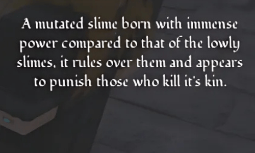 Obwohl er als Mini-Boss gilt, sollte der Königsschleim nicht unterschätzt werden, insbesondere von Spielern mit niedrigem Level. Beachte, dass er keine Seelenpunkte einbringt.