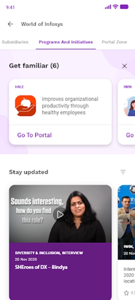 保持更新:定期查看应用程序中的新闻部分和领导者的博客。了解最新的公司更新和行业见解可以为您带来专业旅程的竞争优势。